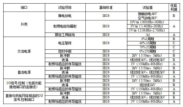 對于上述電磁抗(kang)擾度試驗結果的(de)評定準則,EN 61326-1标準中(zhōng)給出了A、B和C三個性(xing)能判據,簡單描述(shù)如下。