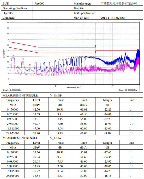 圖4. PA6000輻射發射試驗(yàn)測量結果