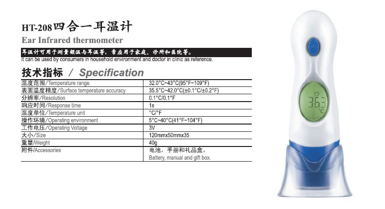 您的位置: 産(chan)品與服務 >> HT208四(sì)合一耳溫計(ji)、HT-50耳溫計