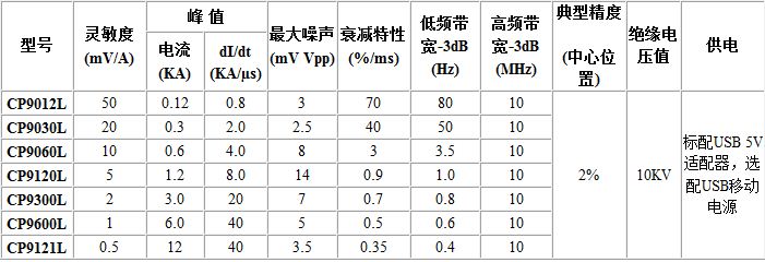 CP9000(S/L)系列柔性電(diàn)流探頭具有(you)高帶寬,高精(jīng)度(典型值2%)特(tè)點❄️。可🥵以實💜現(xian)寬廣的電流(liu)測量範圍,頻(pin)率可從幾Hz到(dao)數十MHz,電流範(fàn)圍從mA級别到(dao)數KA級别,大大(da)解決了電流(liú)測試的難題(tí)。其主要特😄點(dian)包括🍓:線圈輕(qīng)巧柔軟且可(kě)以自由插拔(ba),可以探測到(dao)許多硬制探(tan)頭無法達到(dao)的地方,輕而(er)易舉的實現(xian)與被測對象(xiang)☂️連接;插入損(sun)耗幾乎爲零(ling),僅爲幾個皮(pi)亨,對被測對(duì)象近乎爲零(ling)的幹擾;标😄準(zhǔn)的BNC輸🥰出接口(kou),很方便實現(xian)與示波器,數(shù)據采集器,數(shù)字電壓表等(deng)連接,觀測電(dian)流波形;USB供電(diàn)接口設計,使(shi)用更加靈🙇🏻活(huo)方便;聲光過(guò)流報警功能(néng)‼️,更具人性化(huà)設計;探頭環(huán)😄和連接線長(zhǎng)度可以根據(ju)客戶要求定(dìng)🐆制,滿足特殊(shū)場合測試要(yao)求。