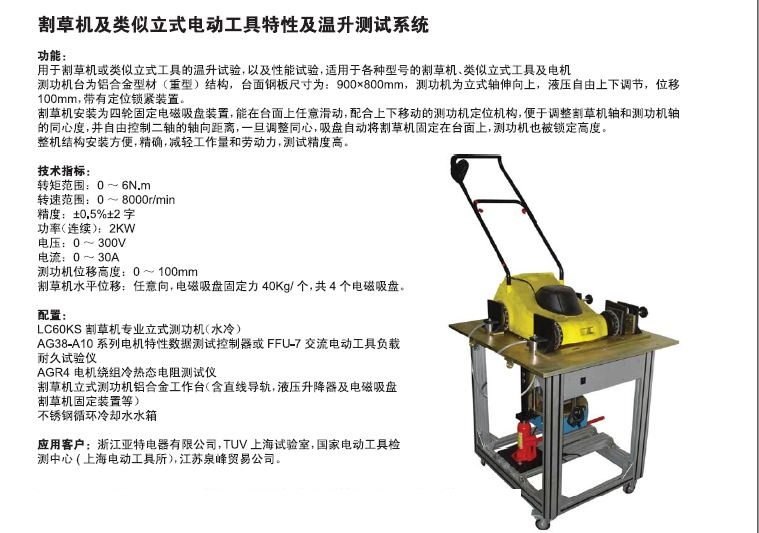 割草機(jī)及類似立式(shi)工具特性及(ji)溫升測試系(xi)統