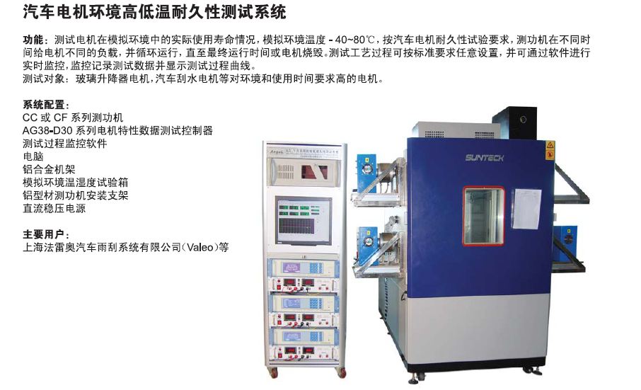 汽車電機環(huan)境高低溫耐久性(xing)能測試系統