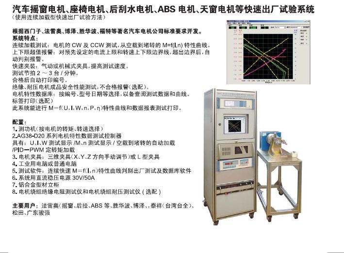 汽車搖(yao)窗電機、座椅(yi)電機等快速(su)出廠試驗系(xi)統