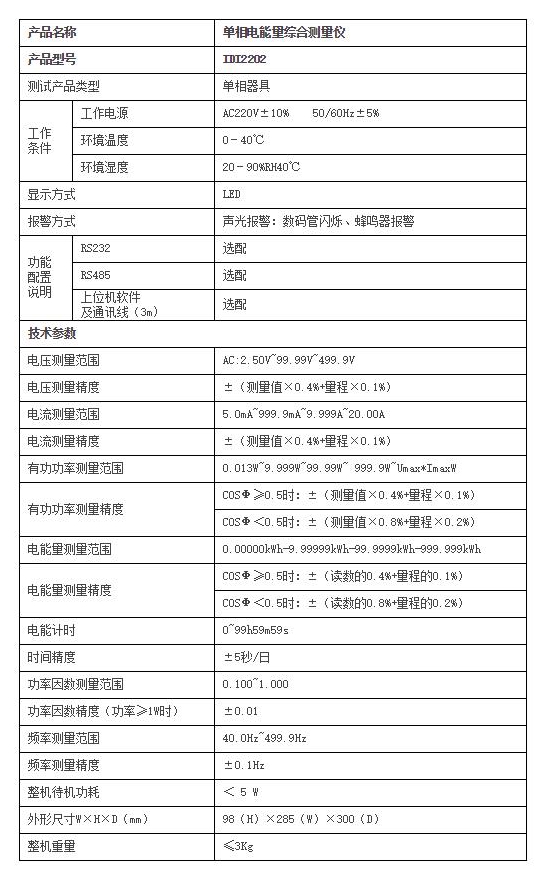 名稱: 單相(xiàng)電能量綜合(hé)測量儀