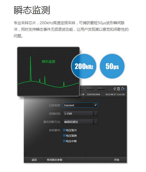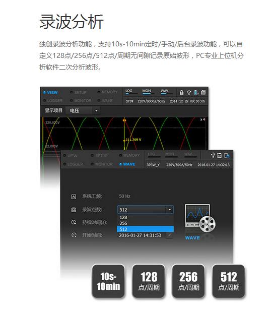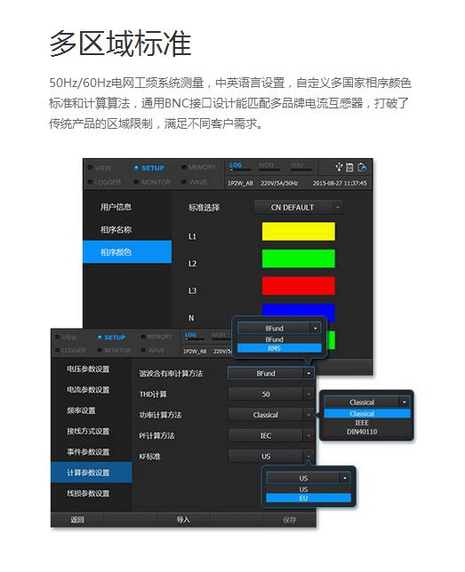 标準支(zhī)持:IEC61000-4-30 A級标準/IEC61000-4-7諧波測(cè)量/EC61000-4-15閃變測量/行業(ye)領先測量精(jīng)度0.1