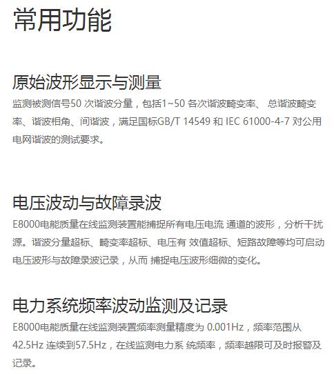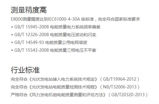 标準(zhǔn)支持:IEC61000-4-30 A級标準/IEC61000-4-7諧波測量/EC61000-4-15閃變測(ce)量行(hang)業領先測量精(jīng)度0.1%