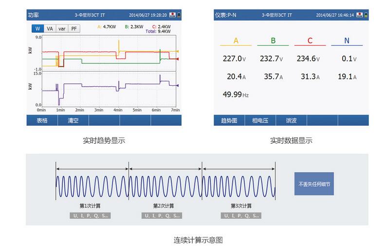 200ms刷(shuā)新率、無間隙連(lian)續運算,實時顯(xian)示功率數據與(yu)趨勢