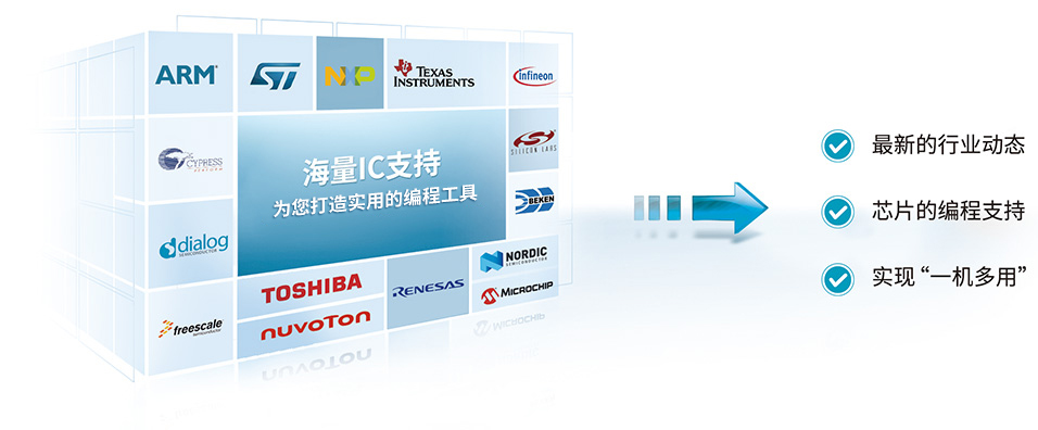 依靠着與(yu)各大廠商的良(liang)好關系,現已支(zhi)持了各種廠商(shāng)的MCU,并且能夠準(zhun)确、及時的提供(gòng)各種新芯片的(de)編程㊙️支持,最大(dà)化滿足客戶的(de)需求。