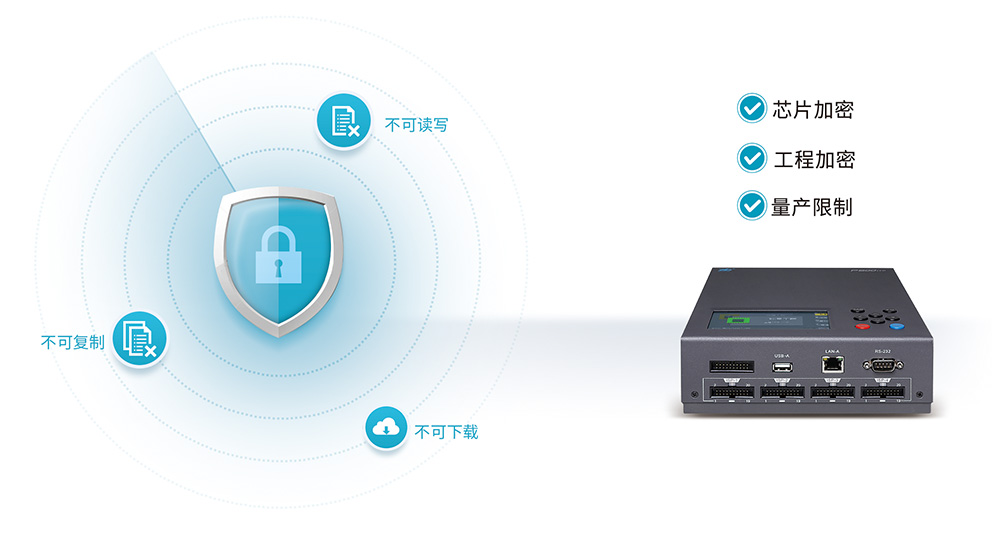 在(zai)投入巨大的研(yán)發成本後,如何(hé)才能保證設計(ji)出來的産品不(bú)被第三方任意(yì)複制?雲燒錄系(xì)統有效地解決(jué)了工程加密和(hé)工程管理的問(wèn)題。研發人員隻(zhi)需将加密工程(cheng)提交到雲端(服(fu)務器),隻有被授(shou)權人才能打開(kāi)加密工程,授權(quan)人仍可随時通(tong)過服務器,實時(shi)跟蹤燒錄狀況(kuang),進而掌握整個(ge)産品的生産流(liú)程!