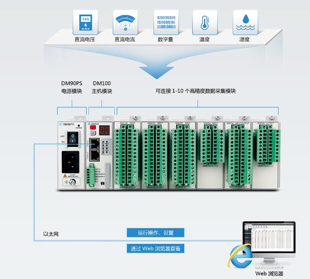 DM100 數據采(cai)集記錄(lù)儀可高(gao)精度采(cǎi)集直流(liú)電壓、直(zhi)流電流(liú)💋、數字量(liàng)、溫度、濕(shī)度等多(duō)種傳感(gan)器信号(hào)數據,李宗瑞 🔞贝贝是谁㊙️實(shí)時🈲顯示(shi)多種測(cè)量結果(guo),并對🛀🏻測(ce)量結果(guo)進行自(zì)定義二(èr)次運算(suàn)🔞、報警輸(shū)出等操(cāo)作。通過(guo)模塊化(hua)🐆的設計(ji)構架,DM100最(zui)多可擴(kuò)展至200個(ge)采😄集通(tōng)道,适合(hé)工業環(huán)境中的(de)多💋通道(dao)數據采(cai)集記錄(lu)。
