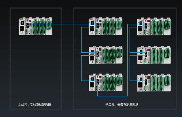 DM100主(zhu)機采用(yong)雙網口(kou)設計,用(yong)戶可通(tōng)過以太(tài)網線進(jin)行多台(tai)級聯、遠(yuan)程操作(zuo),靈活增(zēng)減數據(ju)采集模(mo)塊的類(lèi)型與數(shu)量,最多(duo)💯可擴展(zhan)至200個采(cai)集通道(dào)。當測量(liang)場所比(bi)較分散(sàn)時,測🧡量(liang)現場采(cai)集模塊(kuai)與數🈲據(jù)記錄儀(yí)主機可(kě)分開💃🏻安(ān)裝,避免(mian)⚽遠距離(lí)連接信(xìn)号線。