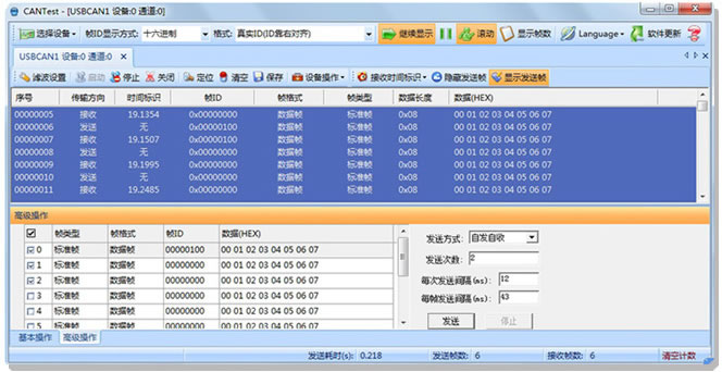 3.高級操作(zuo)可預定義(yì)100幀,并且可(kě)設置發送(song)次數與間(jiān)隔