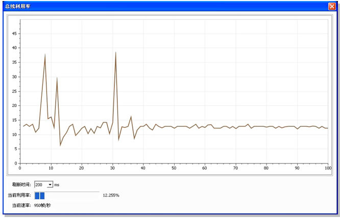 CAN接口卡(kǎ)在任意波(bo)特率下滿(man)負載接收(shōu)能力,可以(yǐ)實現超大(dà)🐪13萬⛹🏻♀️幀緩沖(chong),保證不丢(diū)幀,爲後期(qi)分析保存(cún)完整的測(ce)試數據。