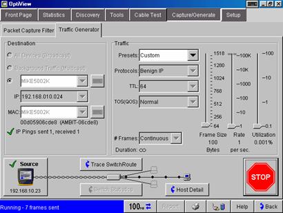 用戶(hu)可以配(pei)置協議(yì)類型、幀(zhēn)大小、幀(zhēn)速、使用(yong)率百分(fen)比和💰要(yao)傳輸💯的(de)幀數,以(yǐ)及流量(liàng)類型:廣(guang)播、多播(bo)或單播(bo)。