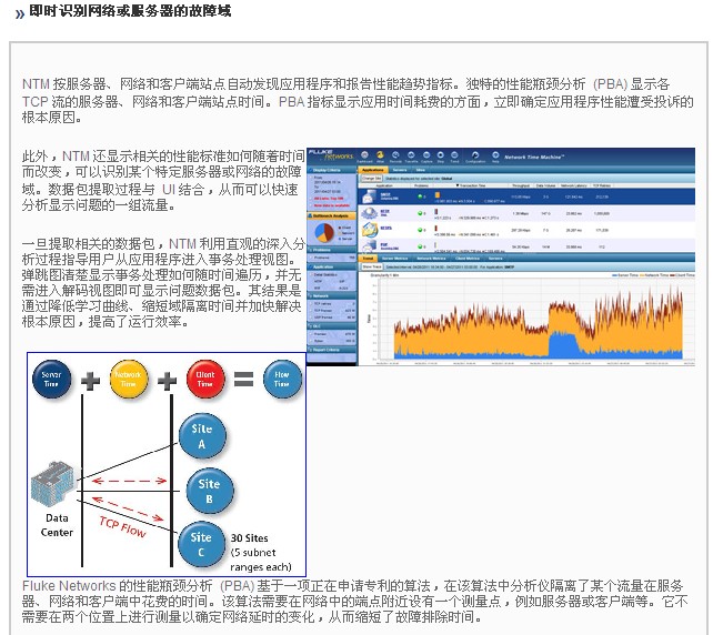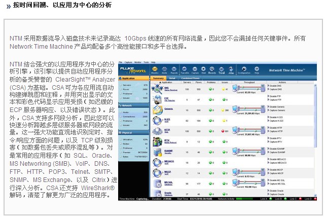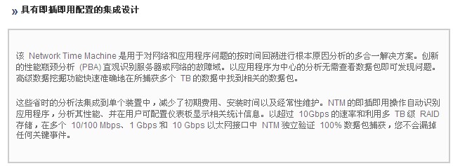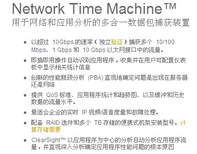 該 Network Time Machine 是用(yong)于對網(wǎng)絡和應(ying)用程序(xù)問題的(de)按時間(jian)回溯進(jìn)行根本(ben)原因分(fèn)析的多(duo)合一解(jiě)決方案(àn)。創新的(de)性能瓶(píng)頸分析(xī) (PBA) 直觀識(shí)别服務(wù)器或網(wang)絡的故(gù)障域。以(yi)應用程(chéng)序爲中(zhong)心的分(fen)析無需(xu)查看數(shu)據包即(ji)可發現(xiàn)問題。高(gao)級數據(jù)挖掘功(gōng)能快速(su)準确地(dì)在所捕(bu)獲多個(ge) TB 的數據(jù)中找到(dào)相關的(de)數據包(bāo)。