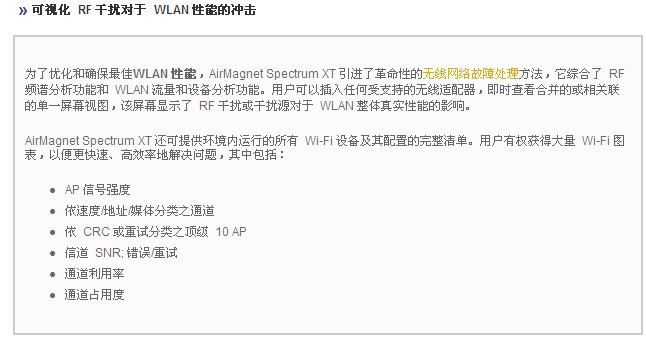 AirMagnet Spectrum XT無線(xiàn)局域網頻(pin)譜分析儀(yí)