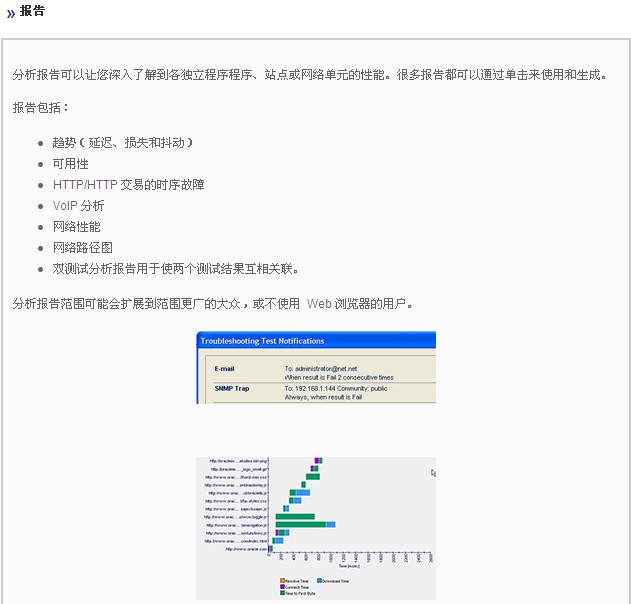 生成響應時(shi)間、吞吐量、MOS、延(yan)遲、損失、可用(yòng)性以及一些(xie)其它❌測量的(de)管理報告