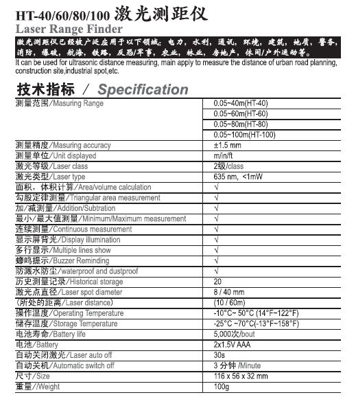 HT-40/60/80/100 激光測距儀